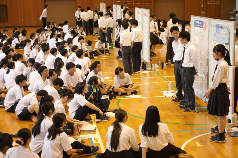 普通科200人も各研究班が自然科学、社会科学、人間科学、すべての範囲で課題を設定し、仮説を設定、検証、考察、解決に向けた提言を行っています。多彩な探求テーマあり、多様な発表あり、質問や批評もたくさん出て活発な発表交流会となりました。12月の発表交流会に向け、改善を繰り返していきます。
