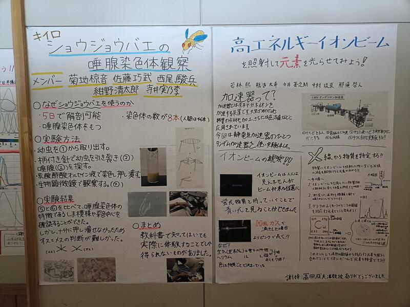 大学視察研修に参加した生徒の皆さんが7チームに分かれ、学んだ内容について、今回はあえて手書きでレポートポスターを作成しました。皆さんの未来の学究的な学びが、人類の課題を解決し、一人ひとりの幸福を支えていきます。愉しい探求は益々進みます。